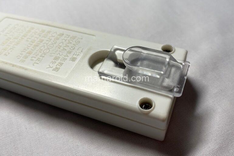 その部分がリモコンを抑えて,まっすぐにひっかけられるようになっているんですね。