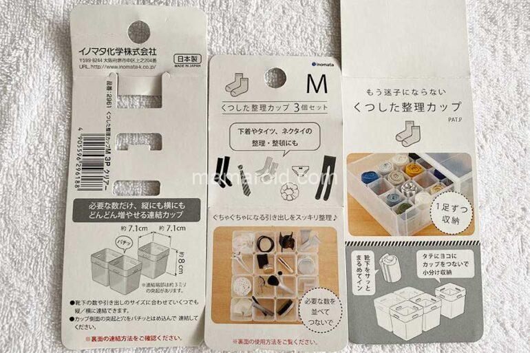 100均ワッツで販売されていた「くつした整理カップ」は110円。