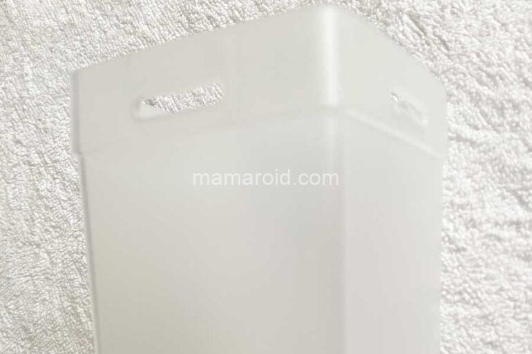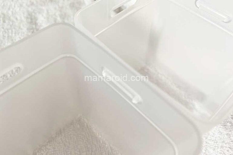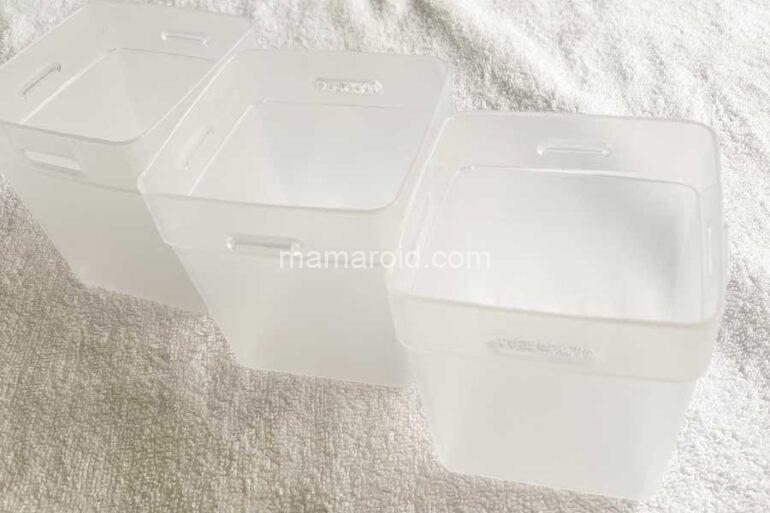 半透明の長方体のカップが3個入っています。