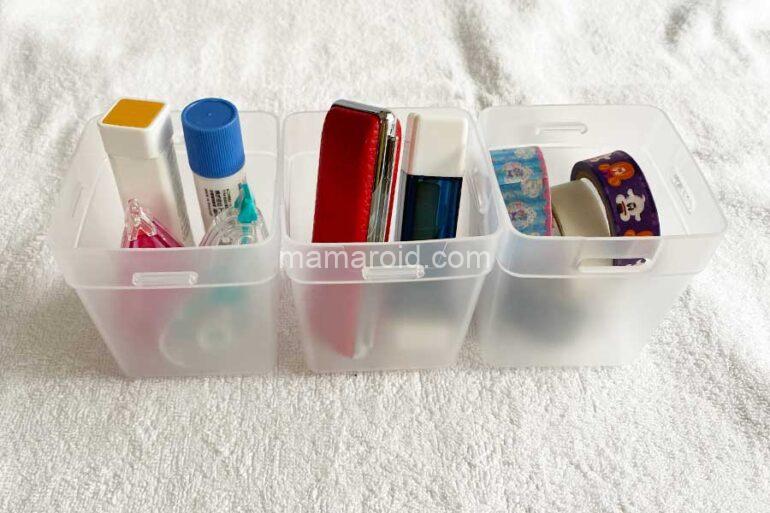 たとえば、文具のこまごましたものを収納したり
