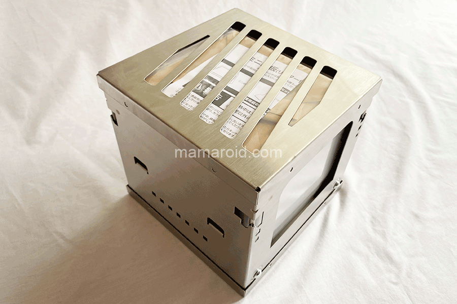 焚き火台のサイズは約16.1×16.1×15.1cm(収納時)で、耐荷重は約5kgですが、このサイズのものは、もちろん100均にはありません。