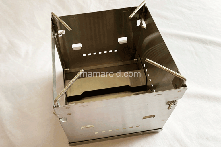 - クッカー、鉄板、網、リフターが焚き火台にスタッキンングでき、収納も容易