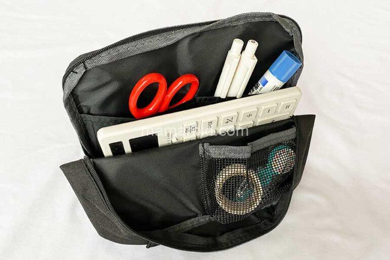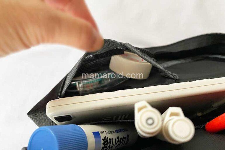 なので、ファスナーをしめるときには逆さまになってしまうポケットも、中身がばらけてしまうことはありません。