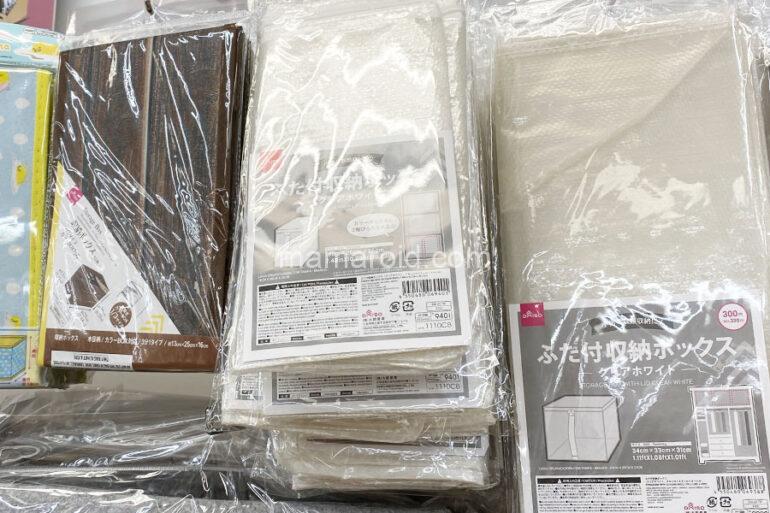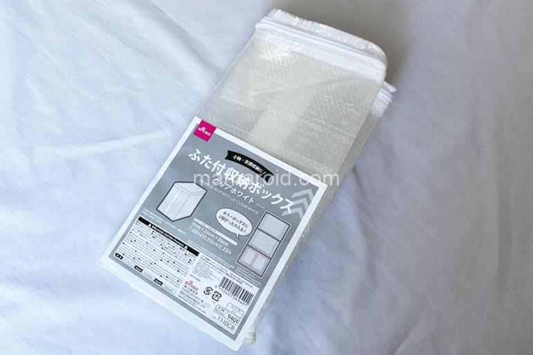 ダイソーのふた付収納ボックス クリアホワイトは110円。サイズは19✖️26✖️26cmです。