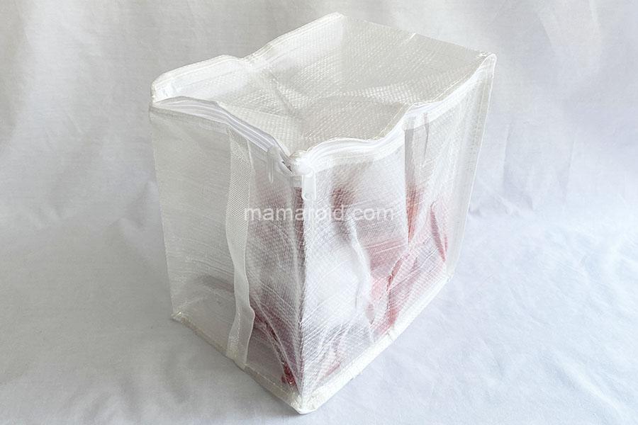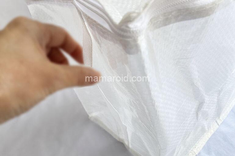 素材はポリプロピレン。ブルーシートのような生地で、くにゃっとはしません。