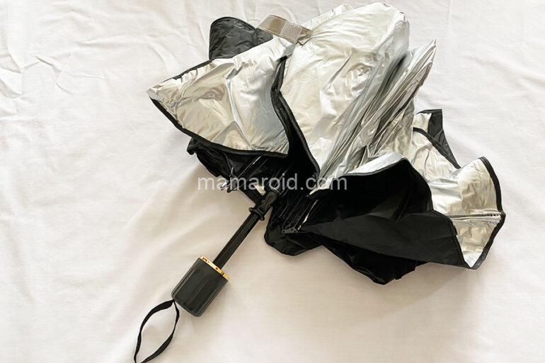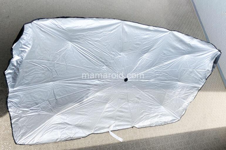 そのサンシェードの不便さを解消してくれるのが、この折りたたみ傘型のサンシェード。