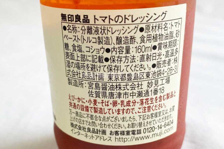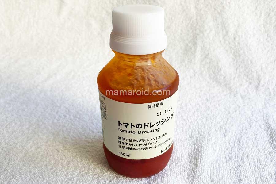 無印良品のトマトドレッシングは、160ml入って290円。さっぱり系の調味料としては使えそうです。