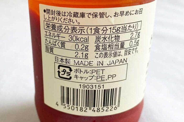 化学調味料不使用。トマト本来の味。で、賞味期限は製造日から180日。私が購入したものは12/3が賞味期限。購入したのは6月末だったので、約半年先ということになります。