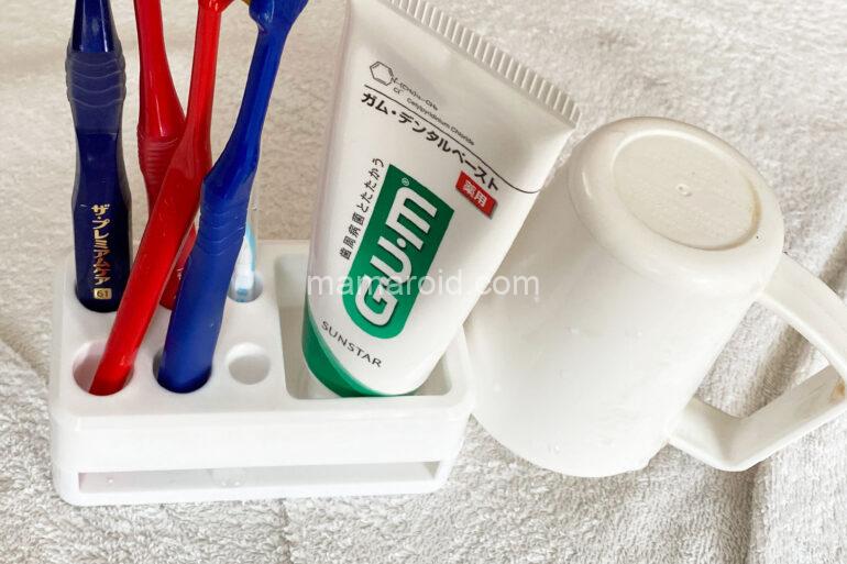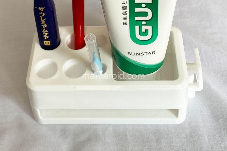 そして、もう1つのメリットは、歯間ブラシや歯磨き粉、コップなどをひとまとめにできること。