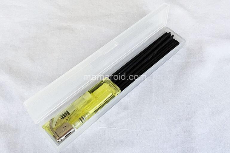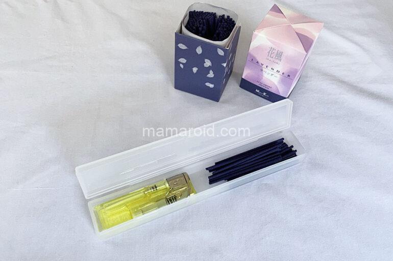 フタを閉めると、ライターが隙間を埋めて押さえてくれる感じで、お線香があっちゃこっちゃ動きません。