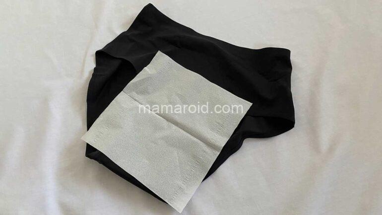ただ、肌にあたる内側には水分が残ります。実際に着用したときも、濡れている感じは肌を伝わってきます。あまりその感じが好きではないので、私はナプキン併用で使っています。