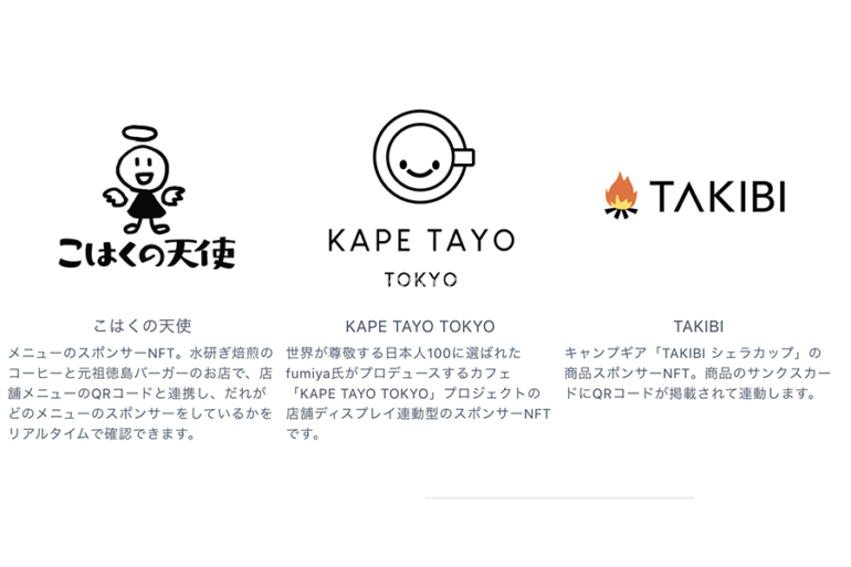 日本円で購入できるマーケットのHEXAでは、スポンサーNFTを展開しています。徳島県小松島市のカフェ「こはくの天使」のメニュー・スポンサーNFTは開始2分で完売したそう。