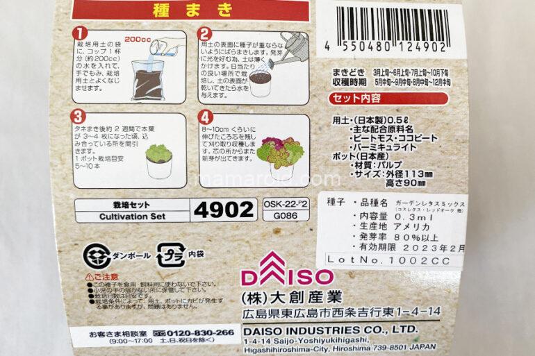 ダイソーベジタブル栽培キット「ガーデンレタスミックス」