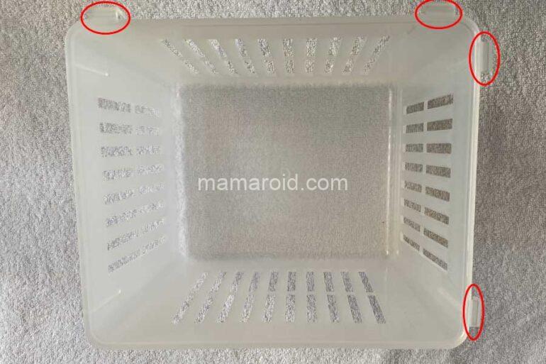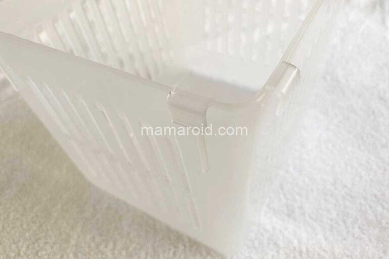 2辺に爪がついていて、カゴ同士を連結させることができます。