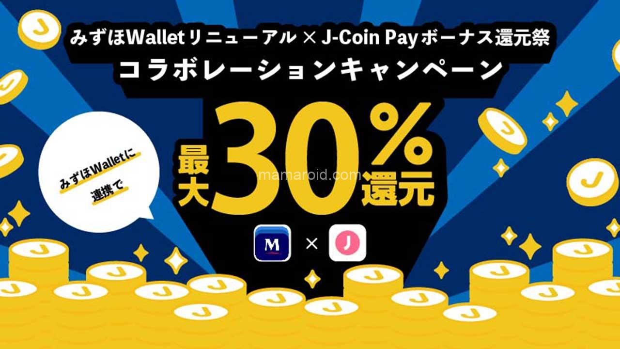 J-Coin Pay(Jコインペイ)では「みずほWallet リニューアル×J-Coin Pay ボーナス還元祭 コラボレーションキャンペーン」を開催しています。