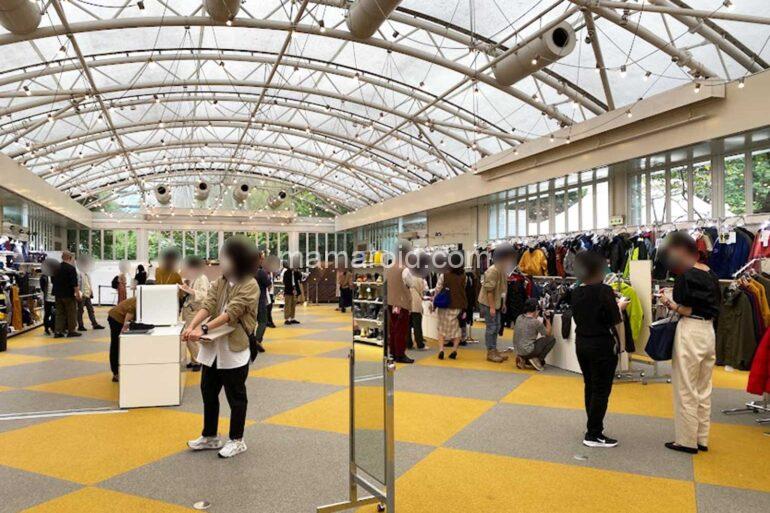 東京プリンスホテル ガーデンプールのガーデンアイランド内にはワークマンの商品が壁伝いにずらり。