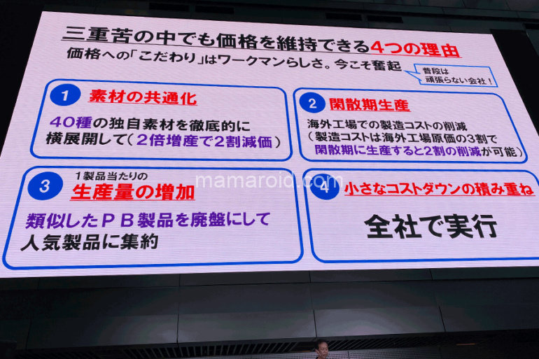 9月14日に、新宿住友ビルにてワークマンの今秋に発売予定の新商品発表会があったので行ってきました。その中で土屋専務より価格戦略についての重大発表が行われたので、その内容について記録しておきます。
