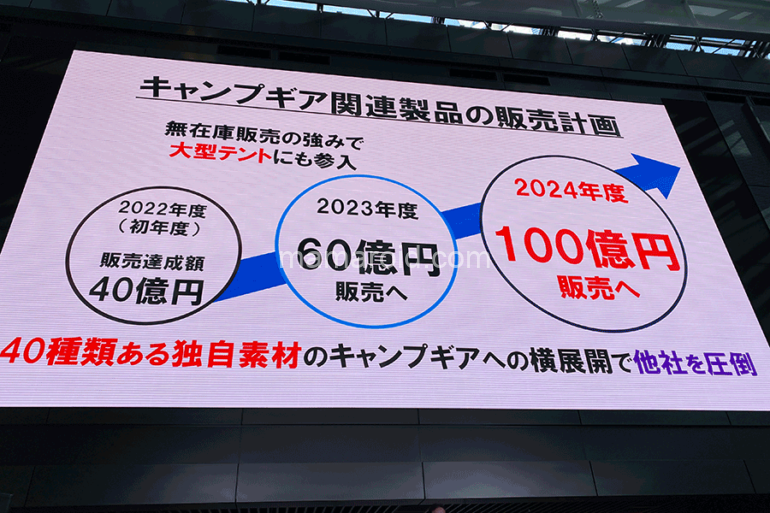 キャンプギアへも独自素材をどんどん投入して販売拡大していく予定。