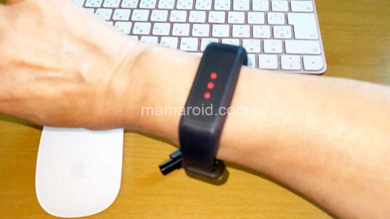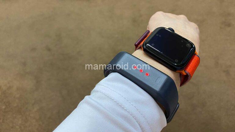 まず屋内で着用していたのですが、時々アラートが赤くなり警告振動が発生します。しかし、電源をオフにして再度着用すると青色に。おかしいな?と思ってよくよく説明をみたら、