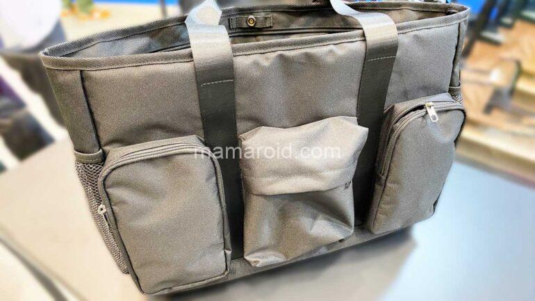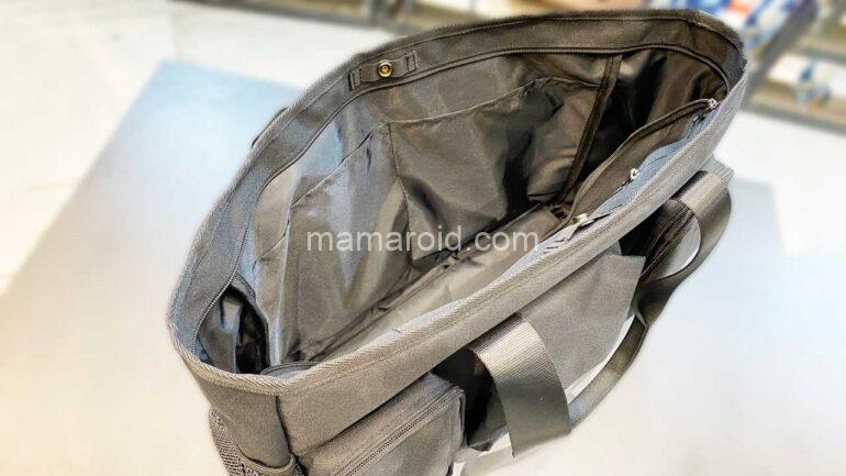 ワークマン「スプリット トートバッグ」は、蓋のまわりにぐるりとファスナーがあり、口が大きく開くところが特徴。