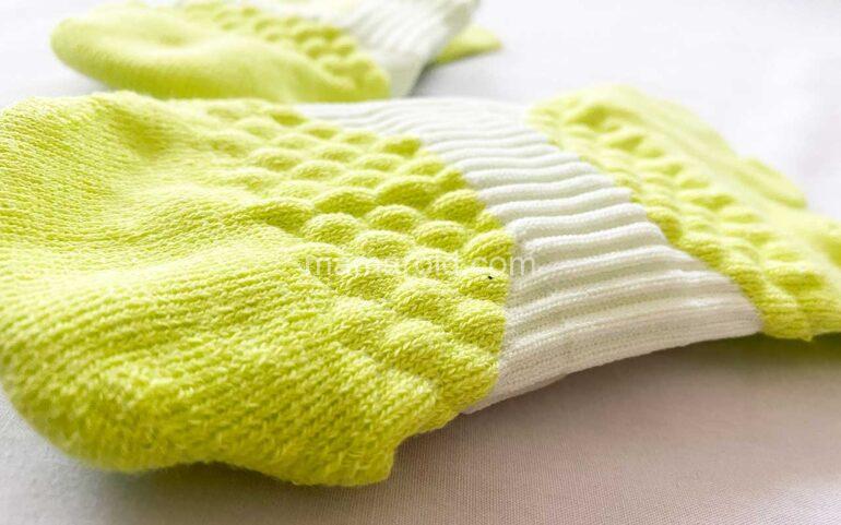 パッケージから取り出しで、まず気になるのが、足底部分についたぼこぼこ。小さな突起がいくつも並んでいます。しかし、底面一面についているわけではなく。