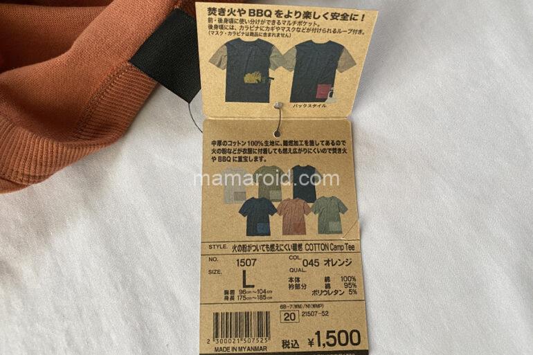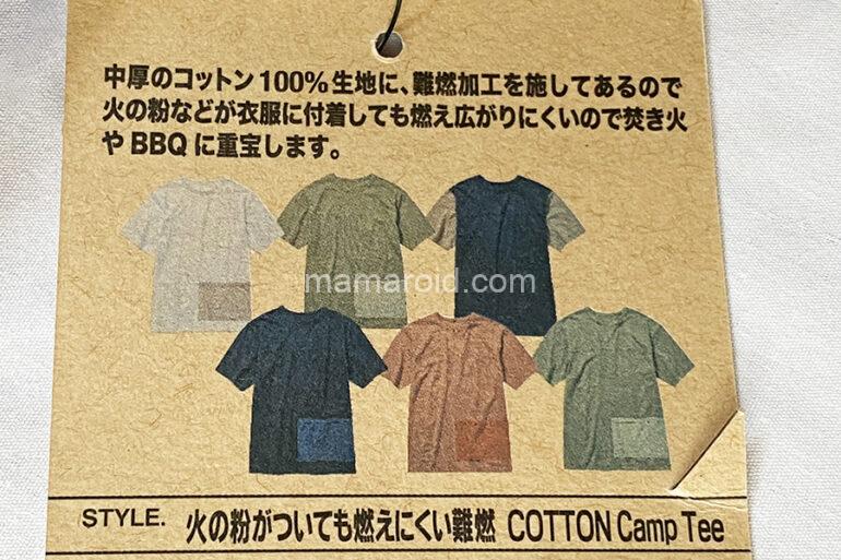 火の粉がついても燃えにくい難燃コットンキャンプT