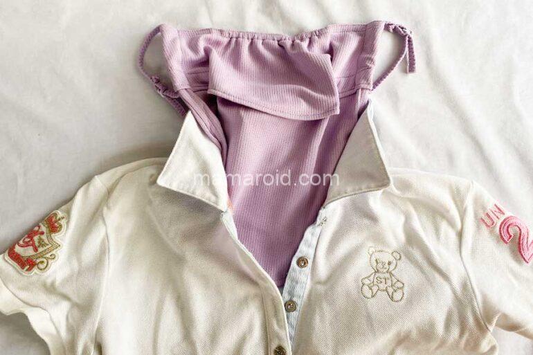デコルテ部分もきっちりカバー。生地に適度な重さがあるので、まくれ上がりにくい感じです。